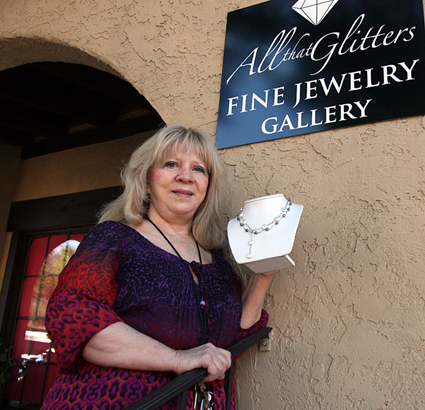 The 500-square-foot space represents a “downsizing” from the former 2,300-square-foot location at 2518 W. Colorado Ave., according to Cretee Nemmer, who has owned the business for about 20 years. “I'm a few years from retirement,” she said; plus, after a recent bout with cancer (from which she's recovered), “my priorities have changed.” The new focus will be more on customized work than on pieces made by jewelry suppliers, she explained. She also hopes to have more time to visit her three children, who live in different parts of the West Coast. Store hours will continue to be Mondays to Saturdays. The new site is in the Old Colorado Square, which has a free parking lot, with several small stores and Jake & Telly's restaurant. Nemmer said that in relocating, she decided to remain in Old Colorado City because over the years she has come to “love the neighborhood. I just wanted to stay here.” All That Glitters originally started 37 years ago, Nemmer said. She had also owned the property at 2518 W. Colorado Ave. Its new owner is Heather Joffe, proprietor of the Thunder & Buttons restaurant and bar in Old Colorado City. Asked in a separate interview about her plans for 2518, Joffe said she is seeking to lease the space. Over about a five-year span starting a decade ago, All That Glitters had made headlines by annually hosting a traveling estate sale from New York that included jewelry from celebrities such as June Carter Cash and the wife of Howard Hughes.
